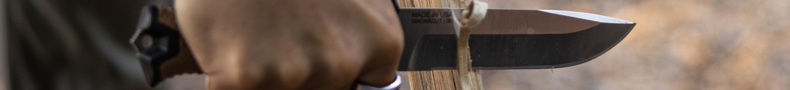 - Noże z Głownią Stałą i Bushcraft – Pancerne konstrukcje typu Full Tang (m.in. Strongarm, LMF II), zaprojektowane do ciężkich prac obozowych, batonowania drewna i zadań specjalnych.